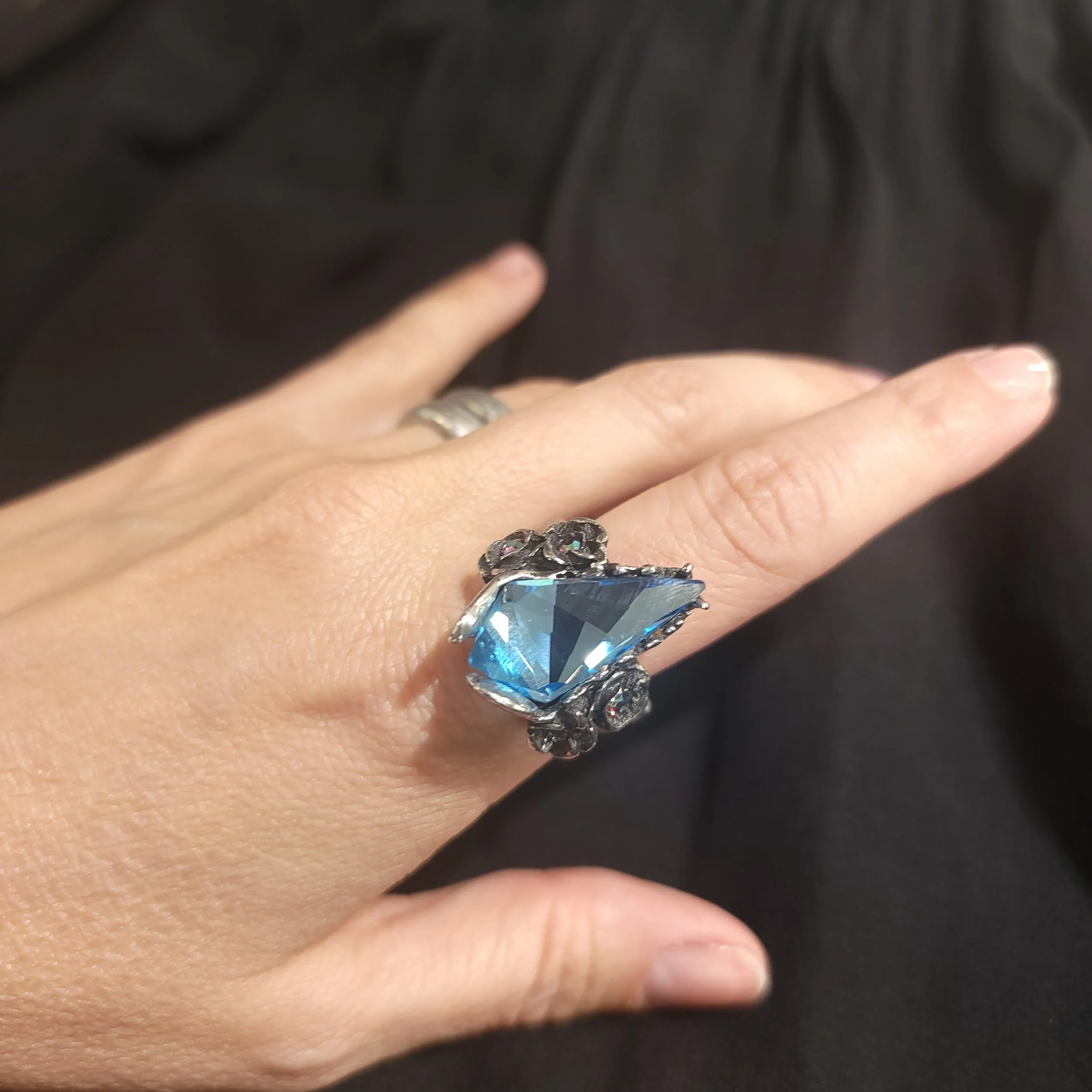 Lead-free pewter cast bat jaw setting with 23mm crystal.