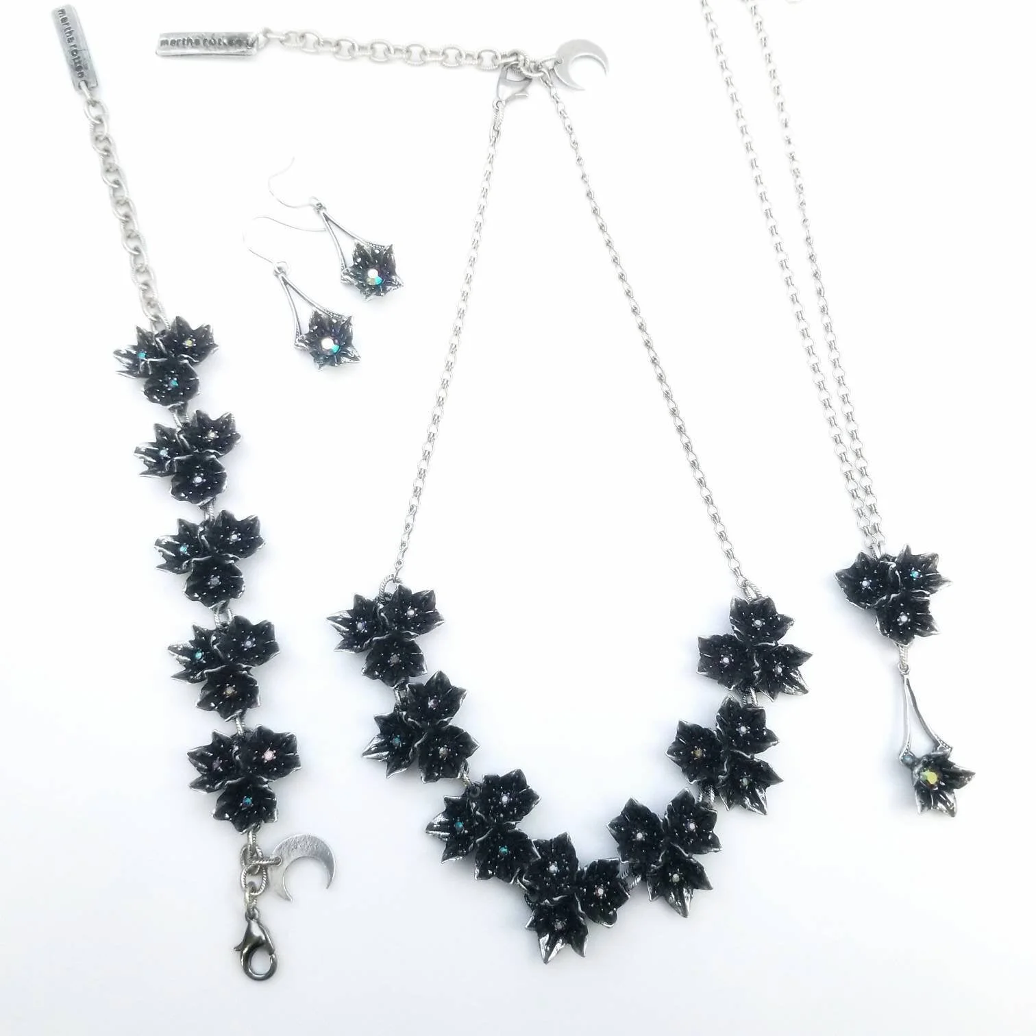 Lead-free pewter cast blossoms from a "moon silver" succulent with amethyst AB crystals